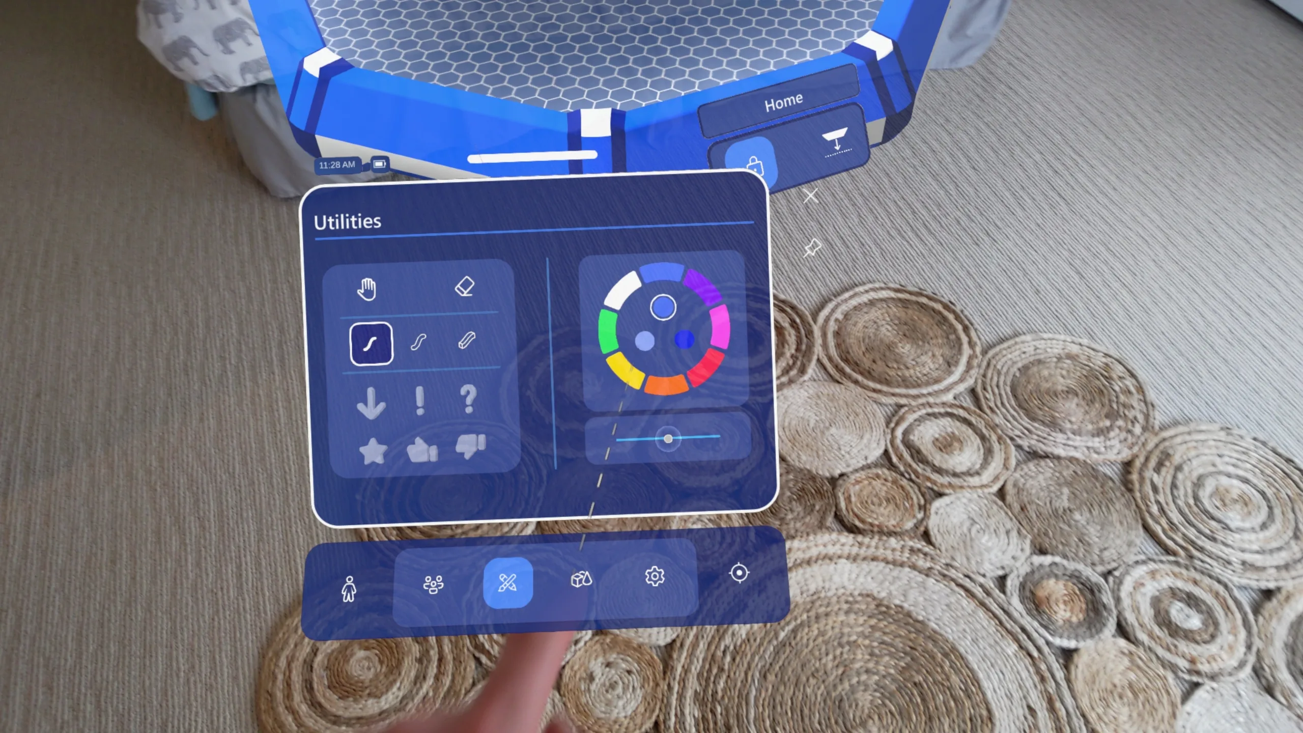 To test it out, I put on the Hololens 2 and fired it up. The headset creates a detailed map of your environment, including your hands, eliminating the need for controllers. You can launch apps and adjust settings through menus accessed by pressing the floating Windows icon mapped to your wrist.